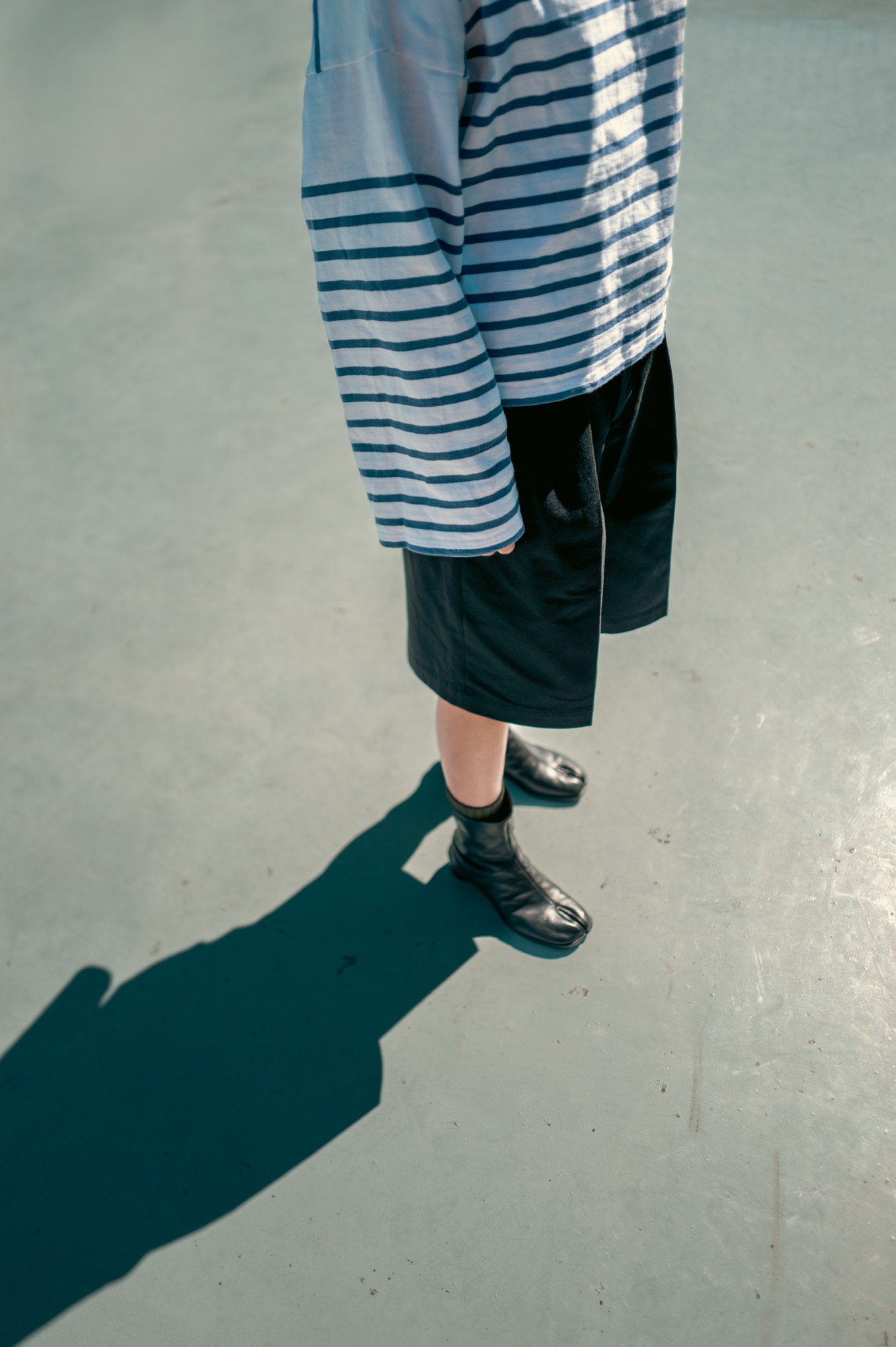 前述した通りショーツを穿く際の最大の鬼門は丈の短さからくるスポーティーさとカジュアルさだ。丈の短さ問題は膝下丈のこのショーツはクリアしているが、そもそもショーツはカジュアルアイテムであることを改めて意識する必要がある。どう転んでもショーツはカジュアルなカテゴリのアイテムだし、だからこそ何も考えずにショーツに更にカジュアルなアイテムを足してスタイリングをしていくと、いくらこのAvilaがカジュアル感少なめの一本でも限界がある。なので本当にちょっとしたことにはなるが、僕自身がショーツを穿く際に気をつけているポイントを共有していきたい。