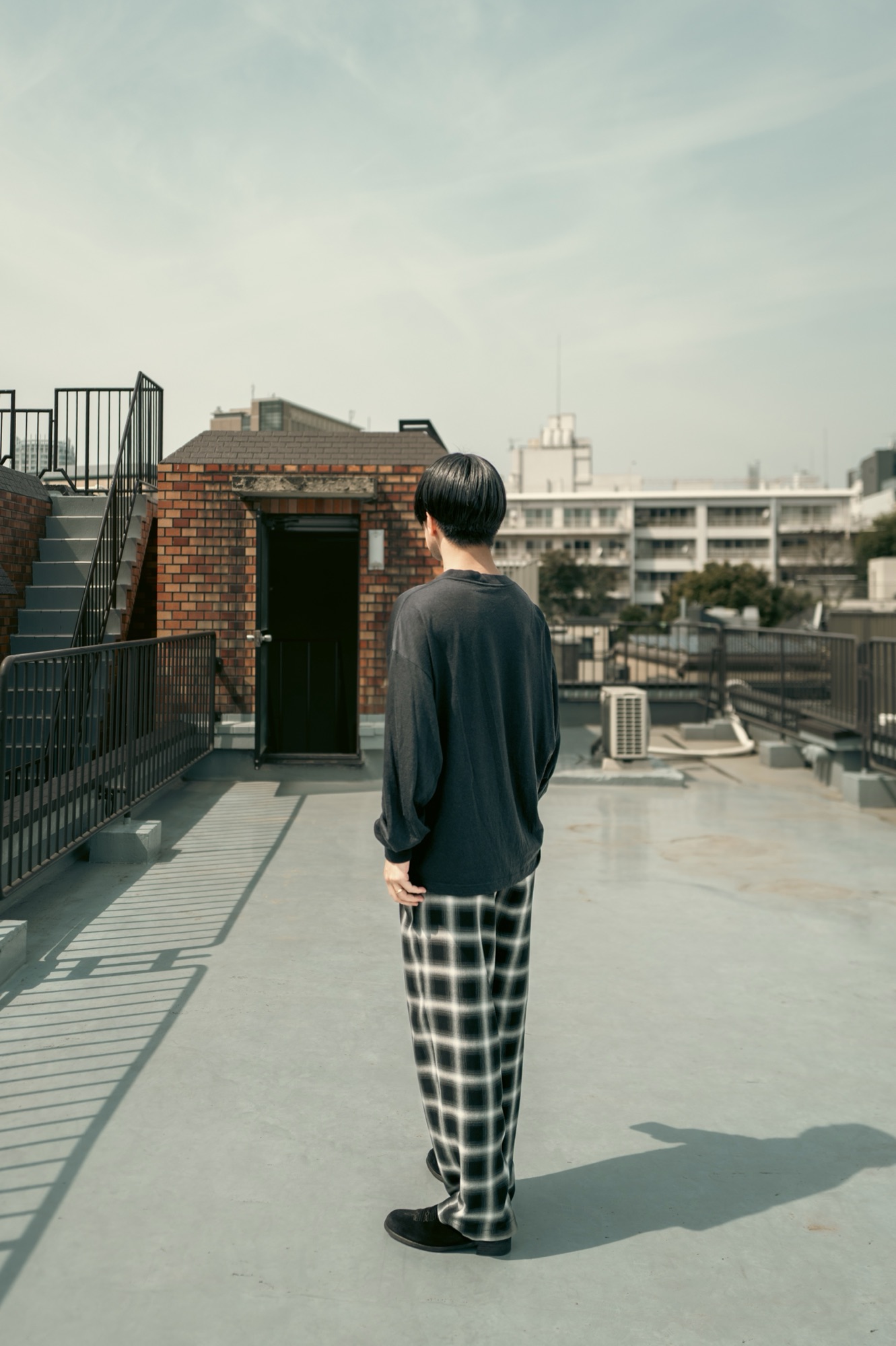 パンツを柄物にするだけで一気にスタイリングの鮮度が蘇る。柄パンツは難易度が高いと言う人もいるが決してそんなことはないし、モノトーンのオンブレチェックなら難易度は下の下だ。柄シャツ+無地パンツのスタイリングの上下逆だと考えれば、柄パンツの難易度が特段高くないことは容易に想像出来るはずだ。そして当たり前なのだが世間的には柄パンツはマスアイテムではない。マスに浸透していないアイテムだからこそ鮮度が高いスタイリングになる。良くも悪くもファッションはそういうシステムだと思う。