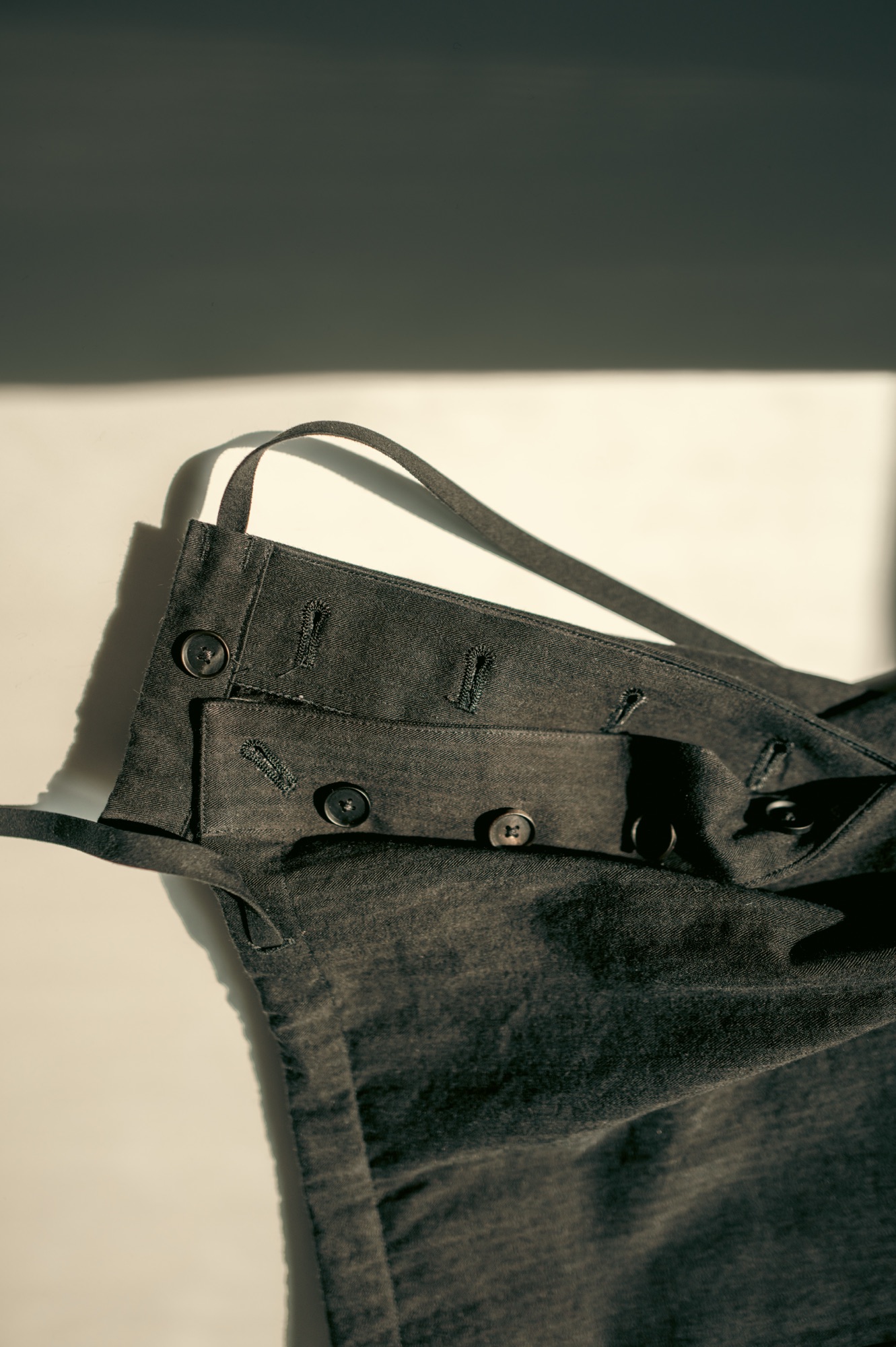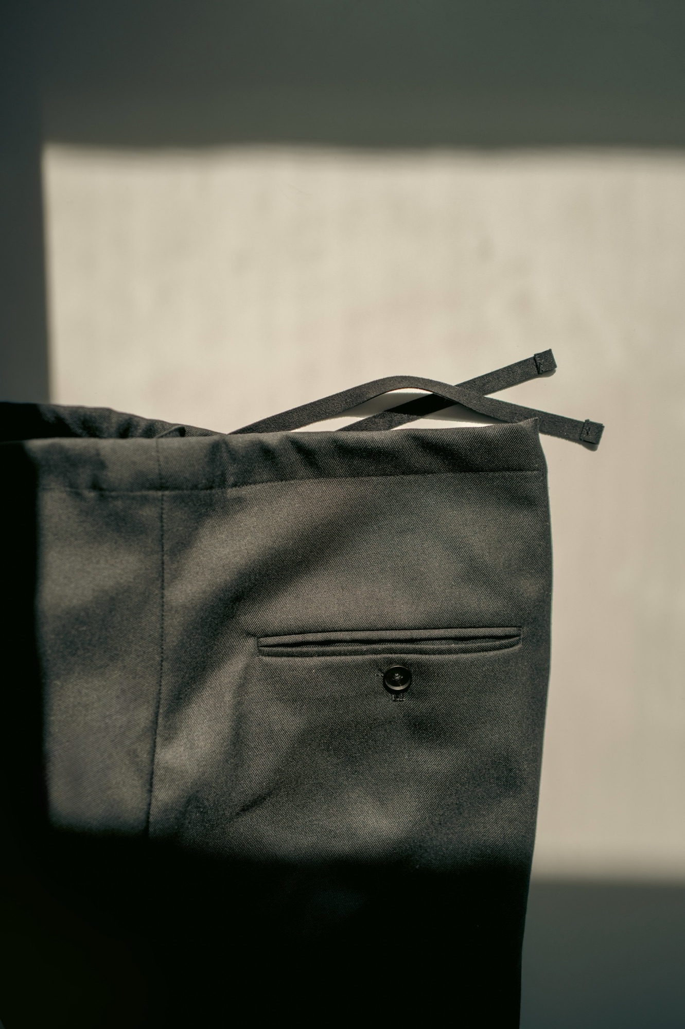 Allukaについては既に過去のブログで幾度もお話ししているのでご存じの方も多いと思うが、まだご存じない方はこちらとこちらの記事を読んでもらえれば概要が掴めるはずだ。簡単にこのパンツについて説明すると、ウエストは紐仕様のドローストリングパンツで楽に穿けるのに、スラックスのパターンで作っているので美脚シルエットがウリのパンツだ。僕がAlgernonで提案したい服の絶対条件は『楽して着れてちゃんとして見える服』だと繰り返しお話ししているし、だからこそこのAllukaというパンツはブランドの核となる一本だとも言える。トレンドが変わっても、自分の服の好みが変わっても、結局この塩梅の服はクローゼットに残り続けるし、日々の生活の中で肩肘張らずに着用が出来る服が一番美しいのではないだろうか。