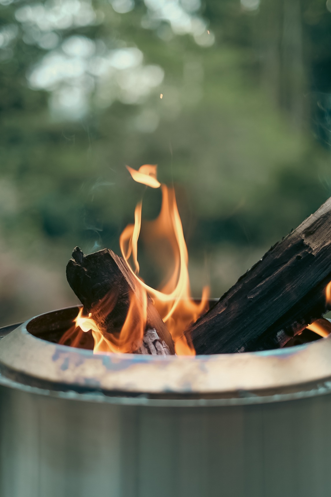 宿にはウッドデッキがあり、そこで焚き火を楽しむことも出来る。夕方から夜にかけては焚き火をして過ごした。宿の近辺は木々が風に揺れる音と鳥の声以外は本当に一切の音がしないので、だからこそ焚き火で木が爆ぜる音がより一層記憶に残っているのだと思う。