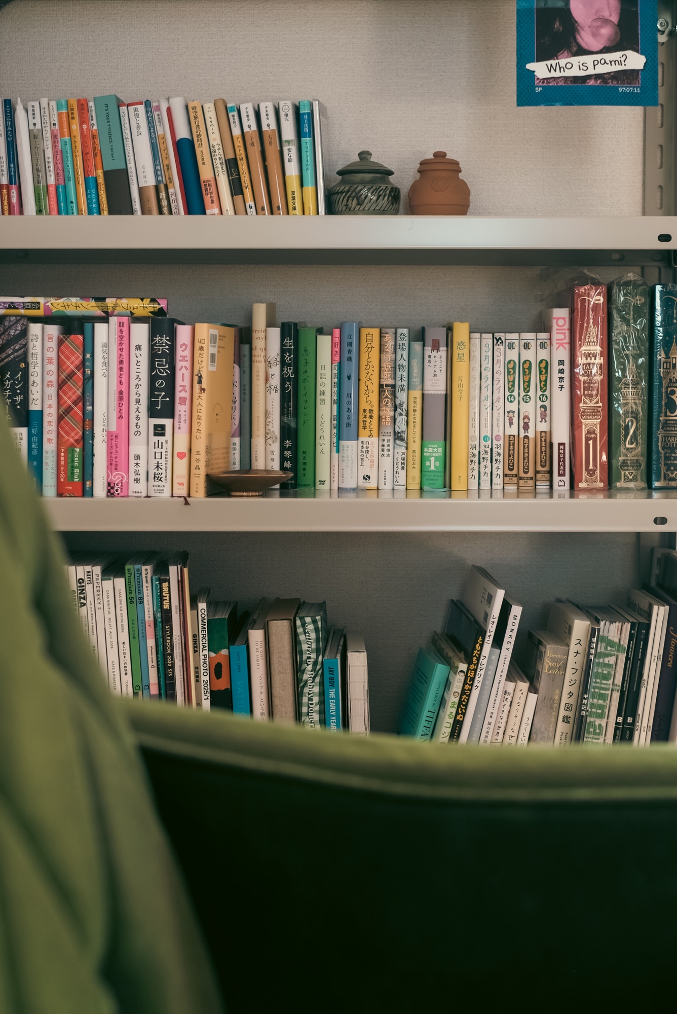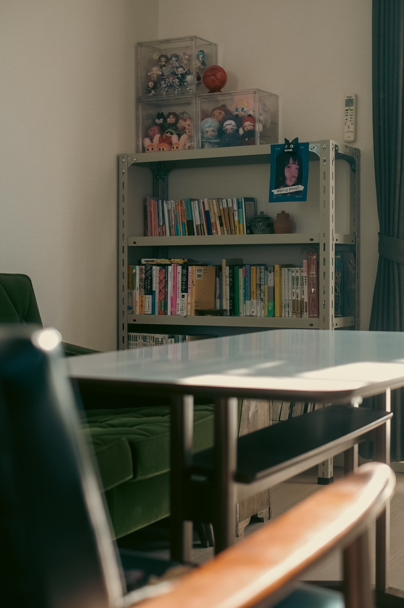 この工業用メタルシェルフも、何も物を入れていない状態だと幾分殺風景に感じたが、実際に本を収めてみると一気に雰囲気が変わった。本も取り出しやすいし並べ方を少し変えるだけでも全体の印象がガラリと変わる。本の配置には妻が拘りがあるようなので、僕は今後もノータッチを貫く所存だ。