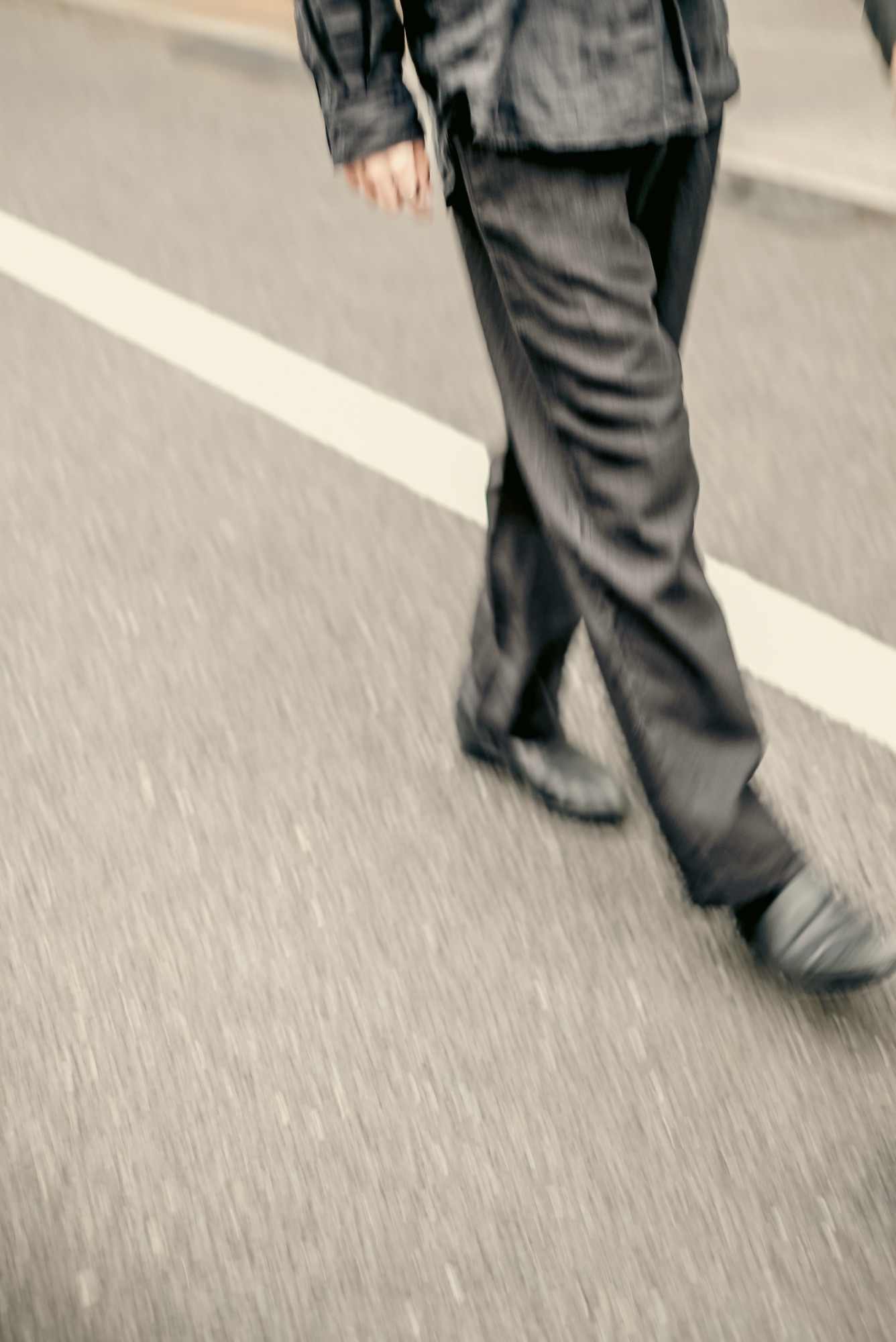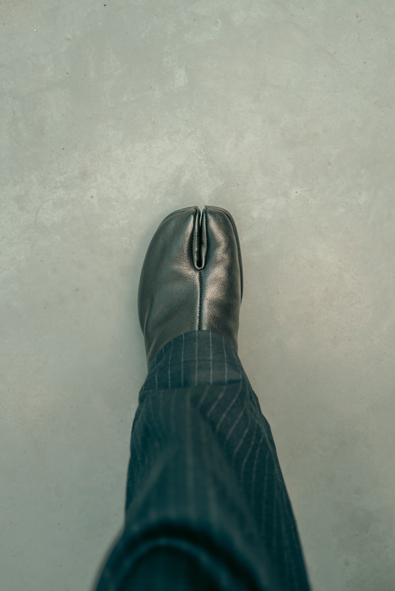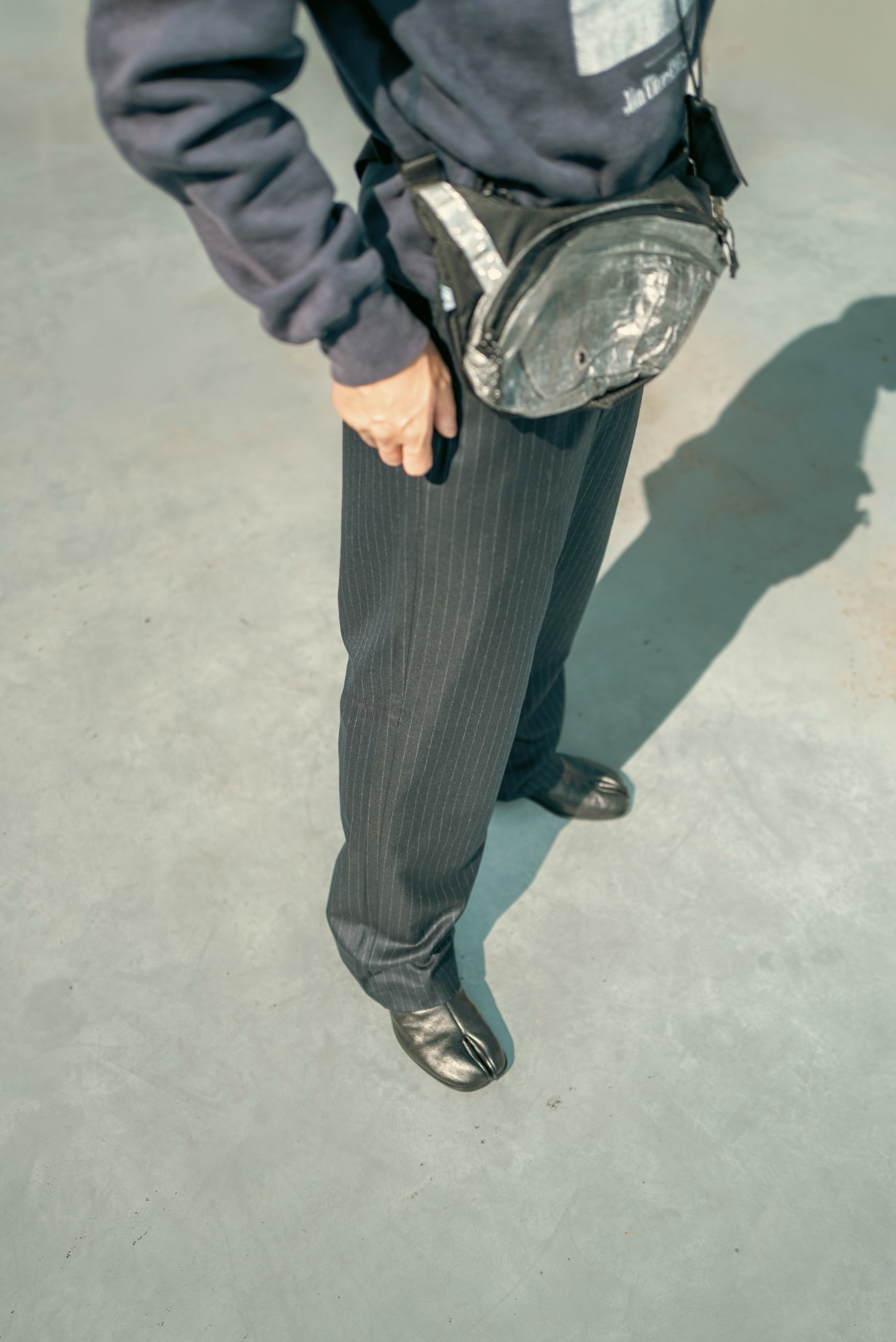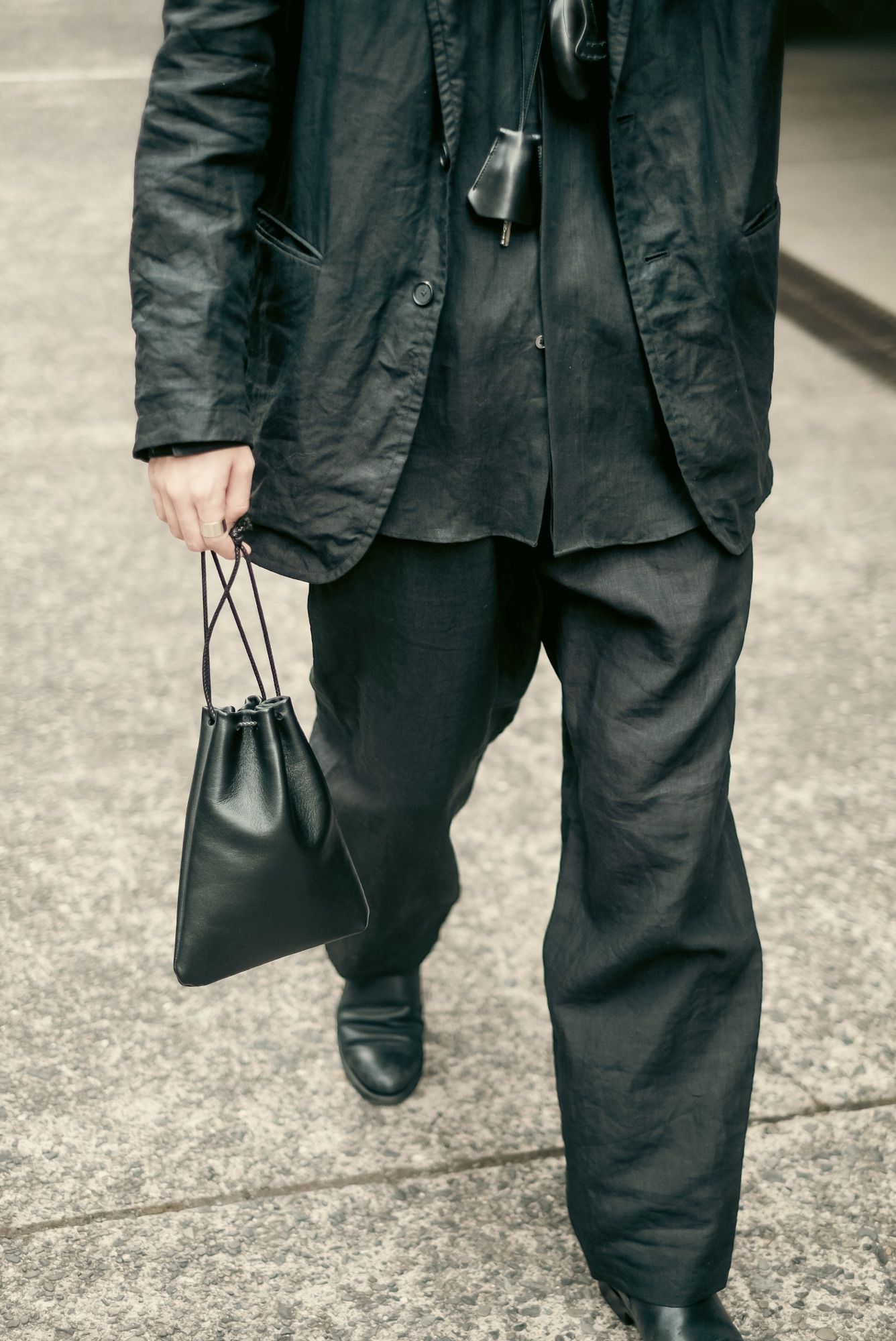 Augus同様に柔らかい生地を使用しているからこそ、歩く度に動きが出てシルエットに変化が生まれるところが最大の特徴。柔らかい生地感は着用者の快適な穿き心地も同様に叶えてくれる。そして歩いていない時はストンと綺麗に落ちるシルエットが楽しめ、何より脚が綺麗に見える。快適さとキチンと感のどちらも得られるのがこのパンツの魅力だ。
