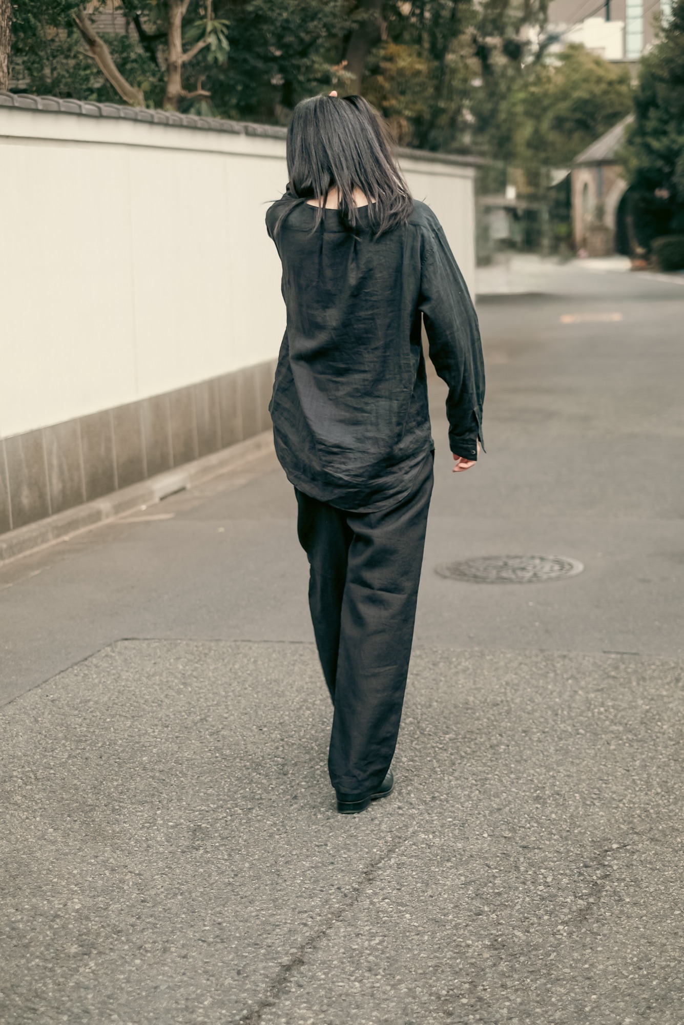 Augusに比べてよりスラックス的な立ち位置で提案しているAllukaだからこそ、同素材のアウターと絡めてセットアップでの展開をすることもある。写真はAllukaに合わせることも想定してリリースした新型のオーバーサイズジャケットBejamin。Allukaと同じリネン生地を採用し、アンコン仕様で裏地もなく、当然のように家庭で洗濯できるようにした。セットアップで購入してくれる方が多かったのが本当に嬉しかった。このセットアップはTPO的な煩わしさを解消してくれることもあって、僕自身もこの春夏は本当に良く着ていた。リネン素材のセットアップだからこそ、着て洗ってを繰り返すと購入時よりもより一層着心地が良くなる。楽に着れて、そしてキチンと感が出せる服が僕は好きだということを再認識させてくれた。