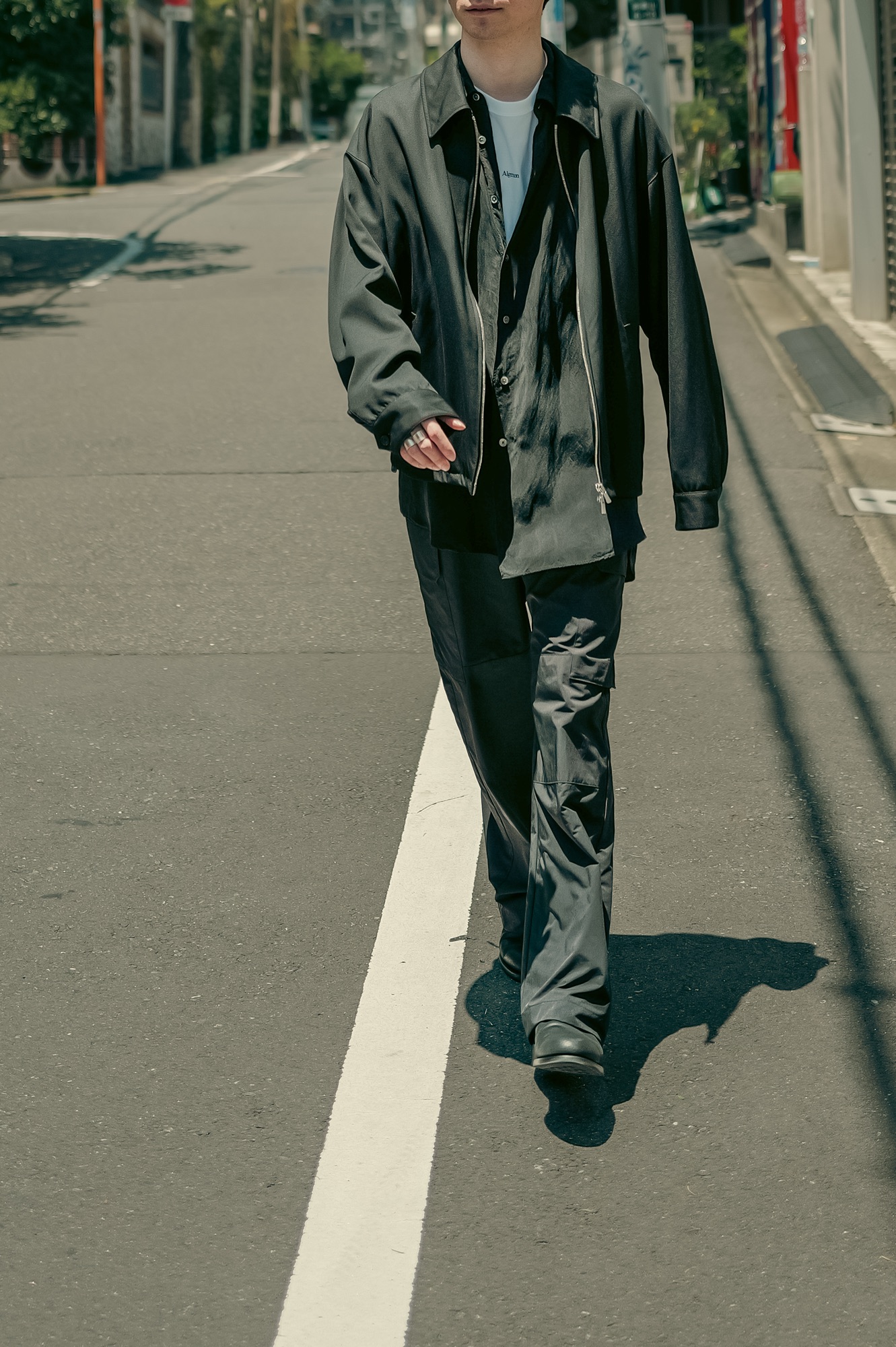 軽めの生地を使うからこそ、歩くたびに脚の動きに合わせてゆらめきが出来るし、立っている時はスラックスのパターンだからこそ、ストンと落ちるシルエットで脚が綺麗に見える。動きのある服は着ていて楽しいし、脚が長く見えるパンツは穿いているだけでも嬉しいはずだ。