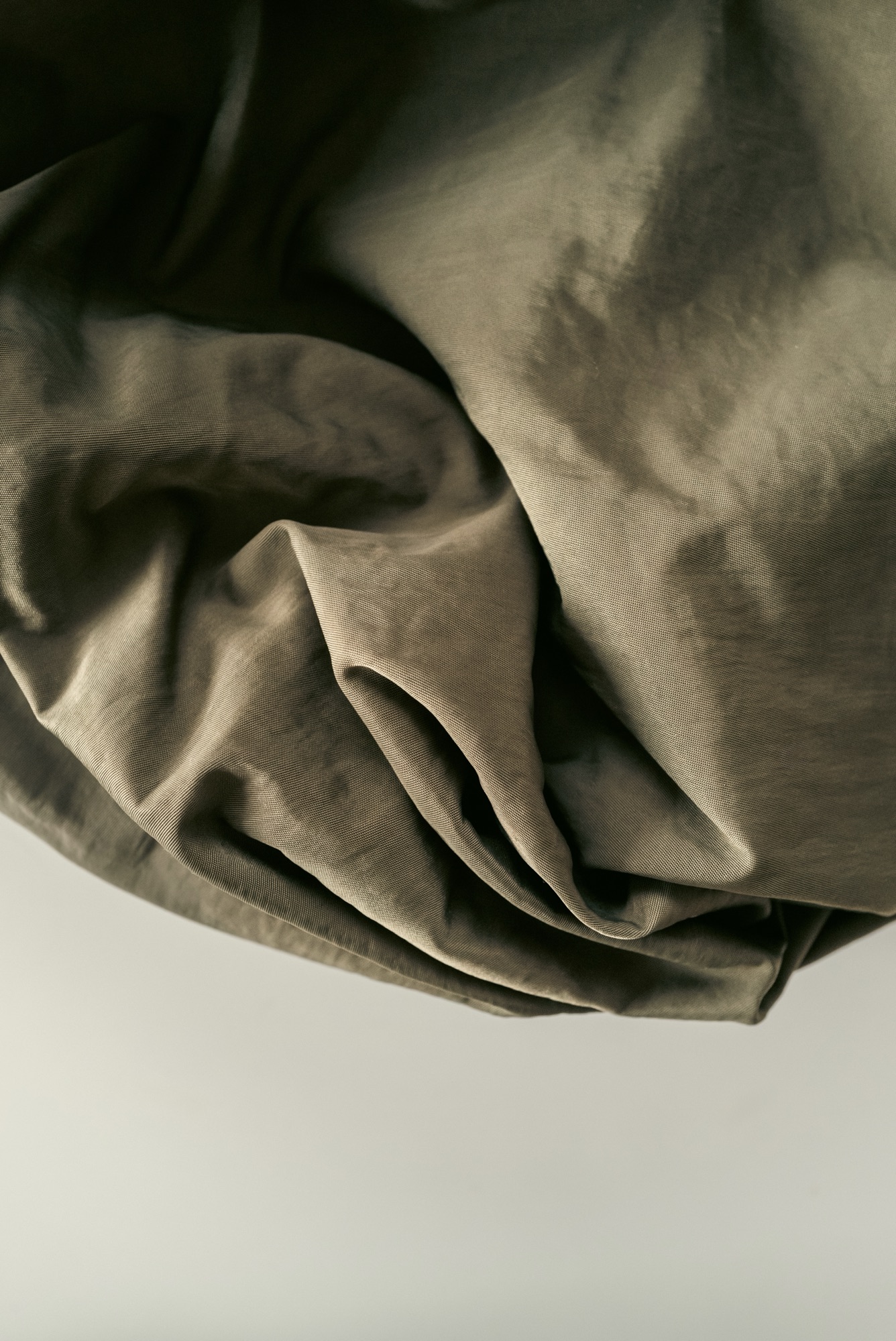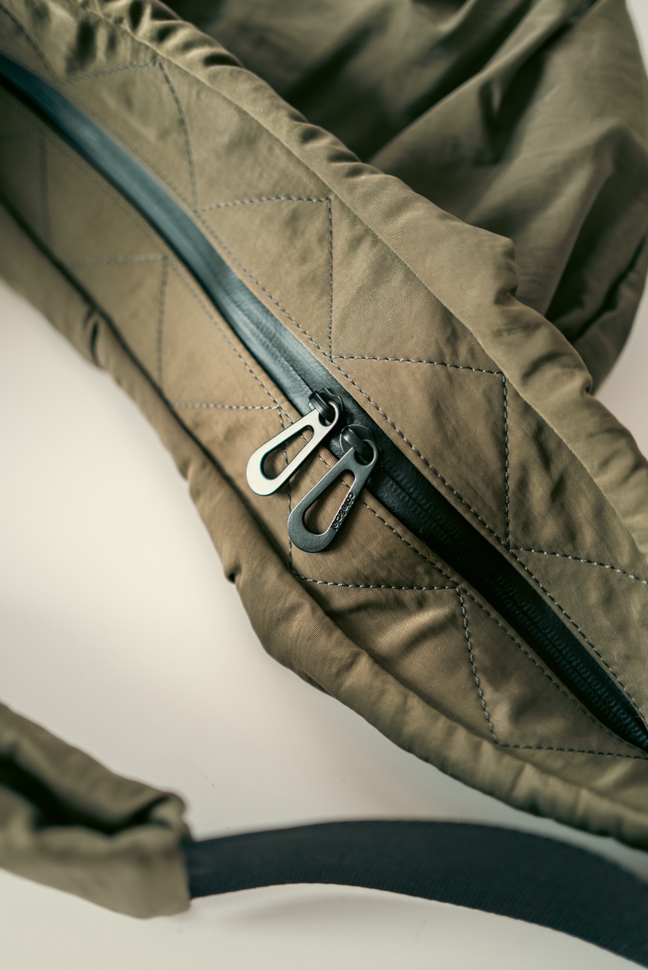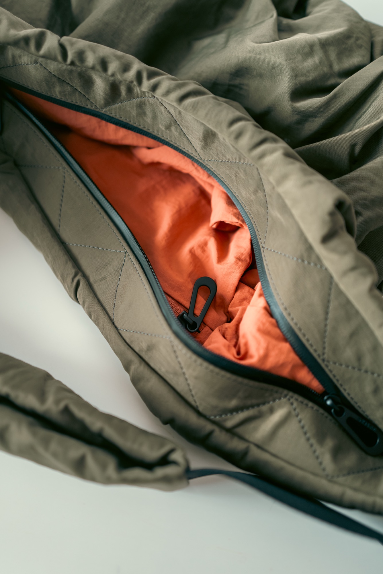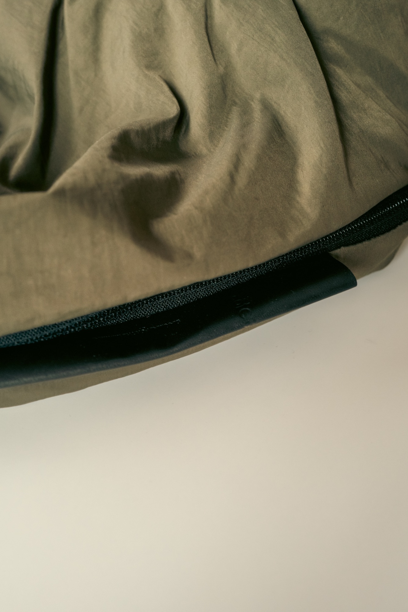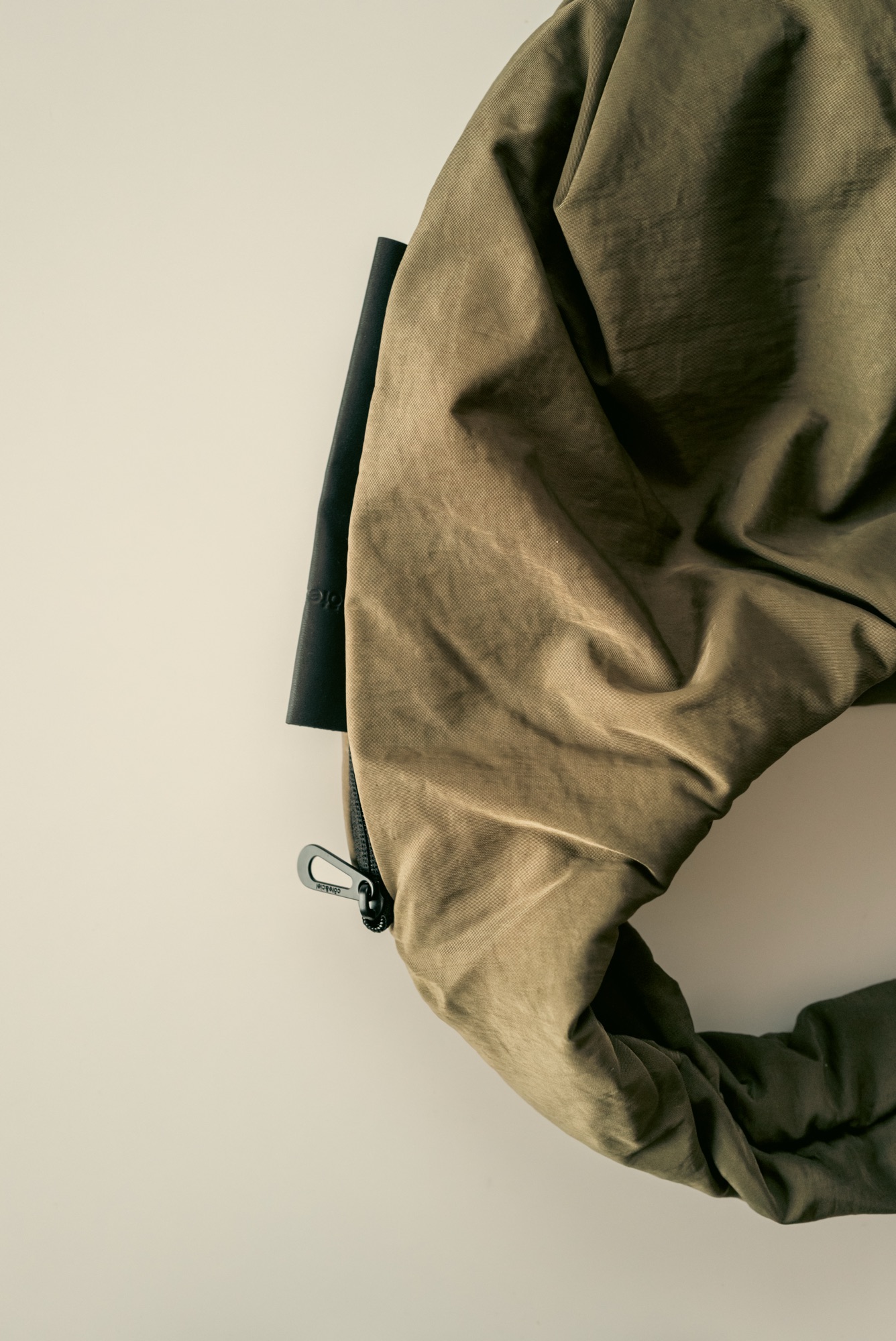 côte&cielはフランス語で『海岸と空』を意味する。テック要素の強い素材選びをしながらも、世間一般のアウトドアブランドと一線を画するのはそのデザインプロセスだと思う。マテリアル自体は化繊素材ながら、それに反してデザインはとても有機的だ。これはcôte&cielのプロダクト全般に言えることだが、折りたたむ・ねじる・縫う・詰めるといった複合的なプロセスを経てデザインが構成されるので、あたかも地層の連なりや積乱雲の表層を見ているかのような気分にさせる造形に仕上がってくる。人工物で自然をイメージさせるプロダクトを作り上げるこのプロセスがとても面白く、僕はその点にとても惹かれている。